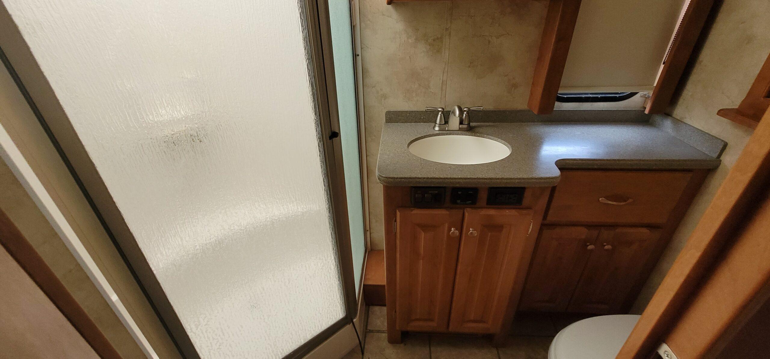 🚿 Spacious Bathroom – Split bath with large shower and private toilet room with sink.