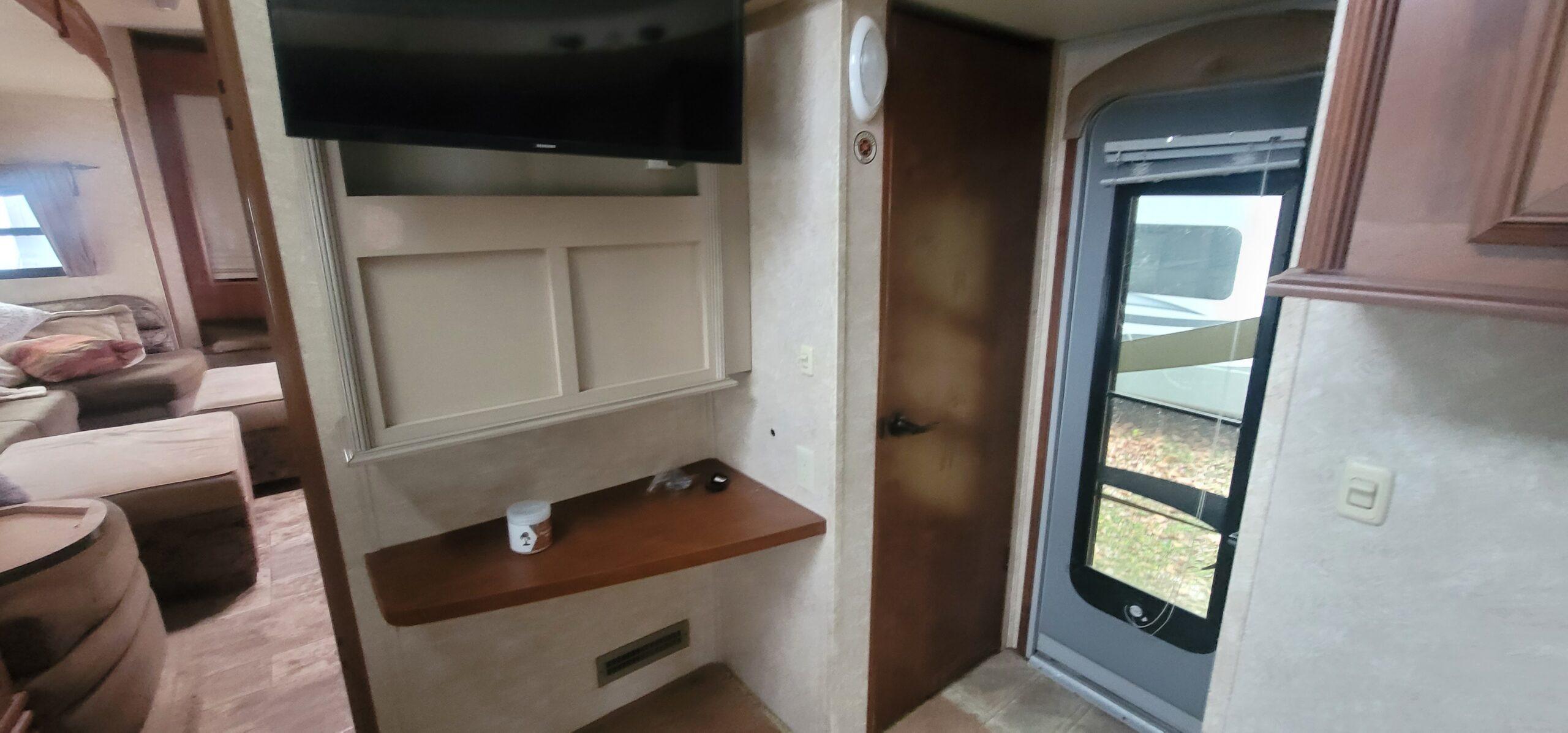 Entertainment Ready: The 413RL comes with a built-in entertainment center, complete with a flat-screen TV, stereo, and ample storage for media devices and accessories. The large, comfortable living space also offers the perfect setting for movie nights or relaxing after a day outdoors.