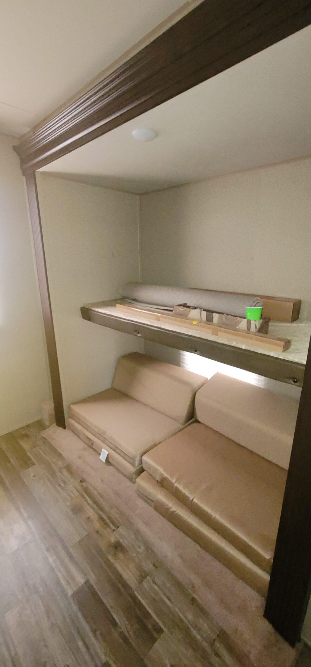 Spacious Bunkhouse Layout: The 39Q2 features a versatile rear bunkhouse with double-over-double bunk beds, perfect for kids or extra guests. There’s also a full-sized sofa and wardrobe storage, creating a cozy sleeping area that doubles as a play or hangout zone. (campersinn.com)