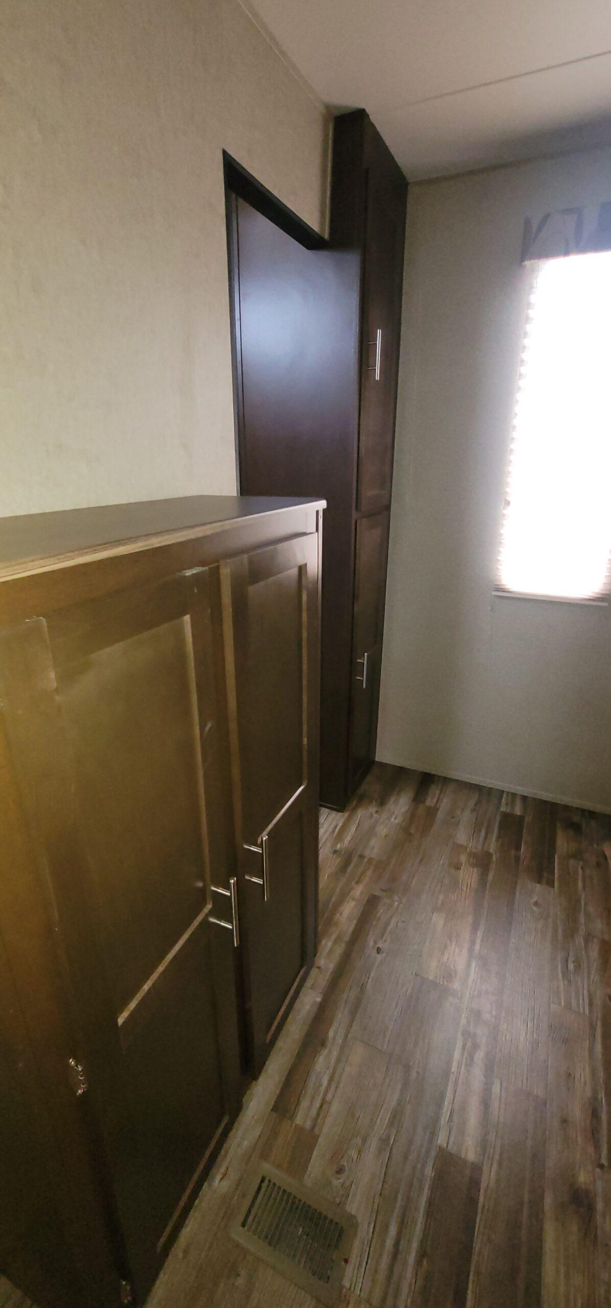 Master Bedroom with Privacy: The front master bedroom offers a queen-sized bed with plenty of built-in storage for your clothing and gear. The room is separated from the living area by a solid door, ensuring maximum privacy and comfort during your rest time.