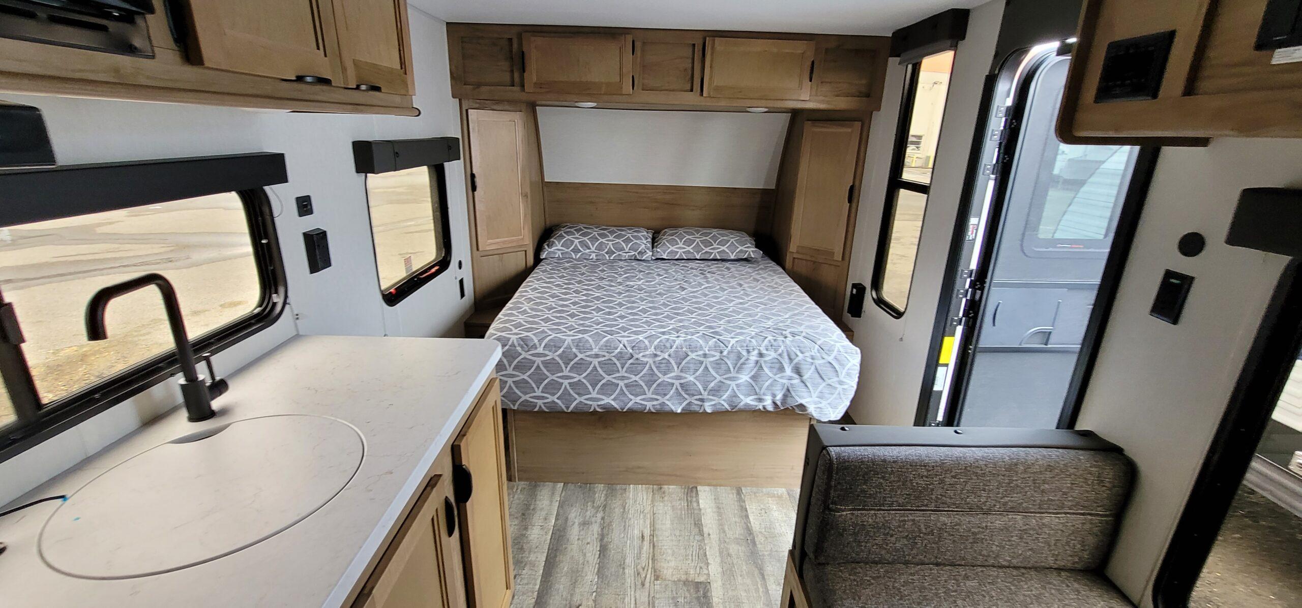 At just 21’10” long and only 3,619 lbs dry weight, this travel trailer is towable by many midsize trucks and SUVs while still giving you the comfort of a full camper.