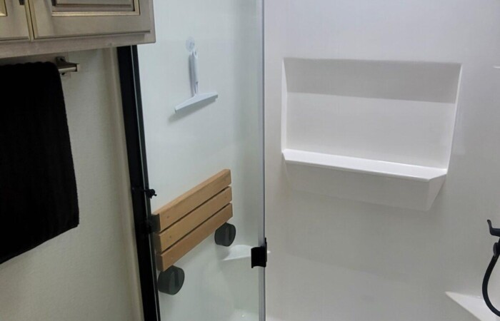 Outside, you’ll appreciate the high-gloss gel coat exterior, auto-leveling system, dual power awnings, and pass-through storage — all built on a sturdy aluminum frame with laminated walls and enclosed underbelly.